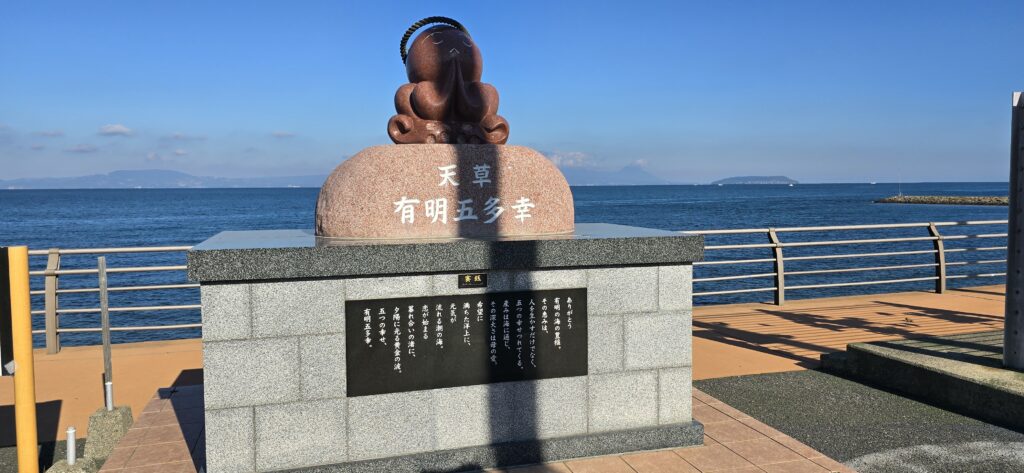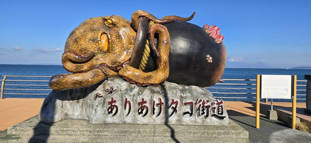 「天草ありあけタコ街道」「天草 有明五多幸」と書かれたモニュメントがあり、人気のフォトスポットになっています。